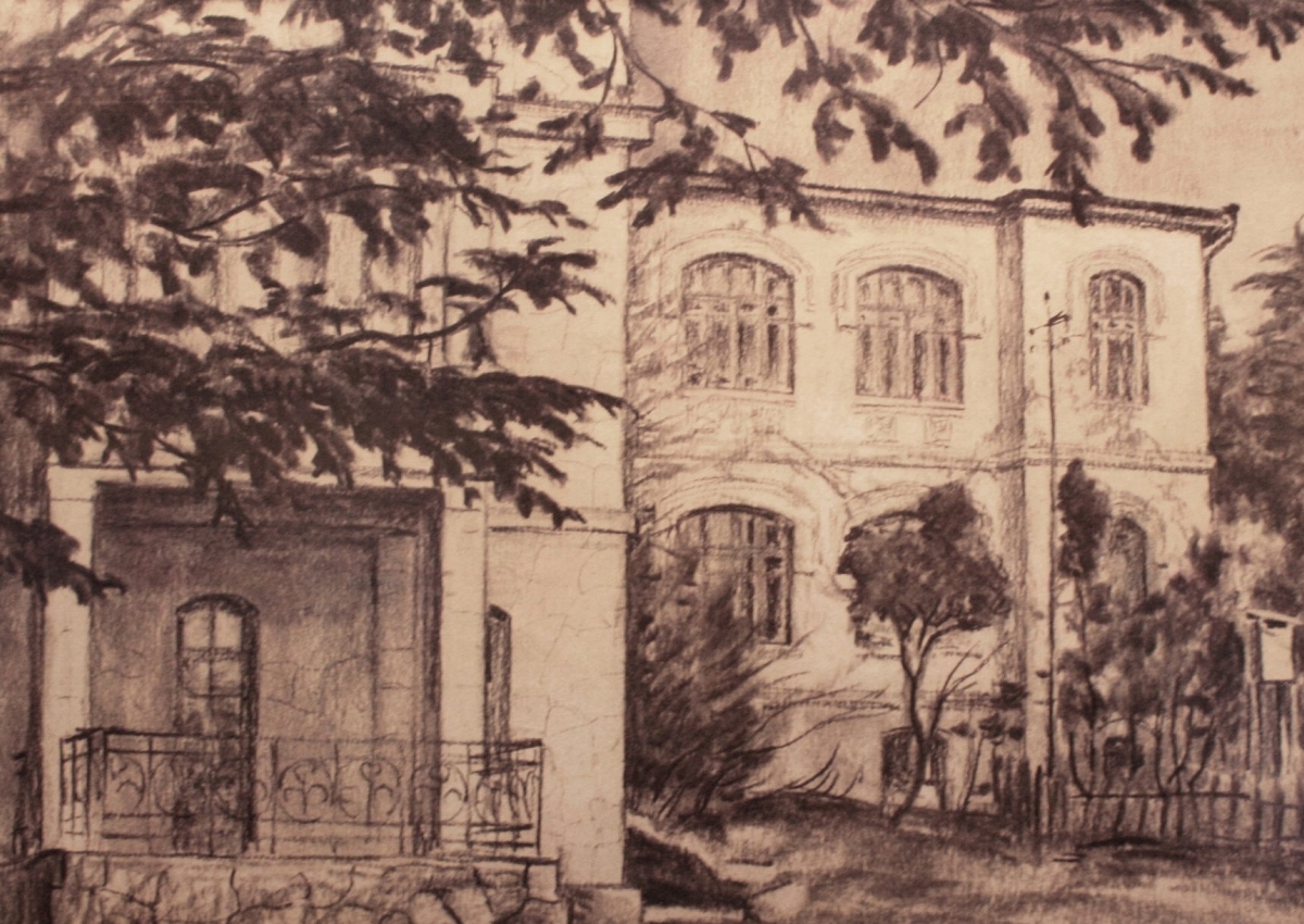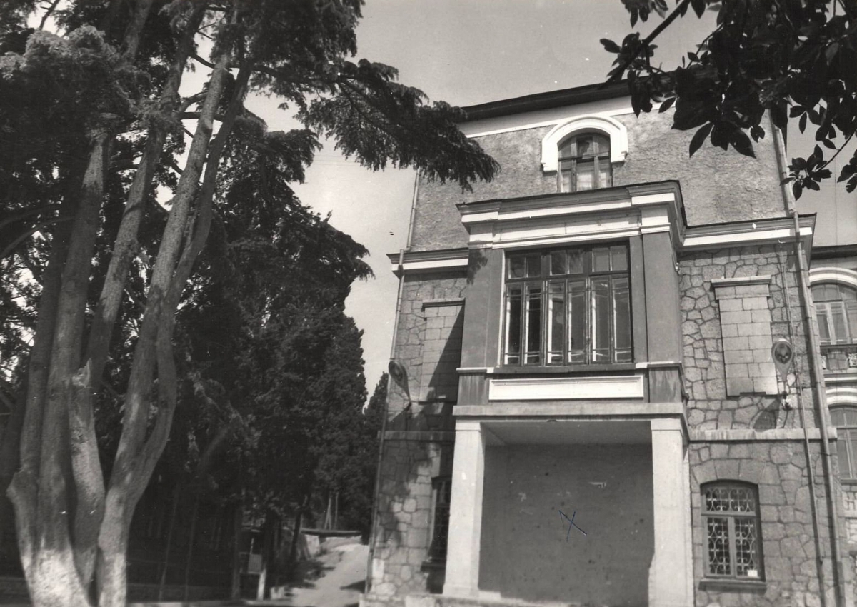 Кедры соседствовали с открытой верандой первого этажа, где некогда находилась квартира начальницы Ялтинской женской гимназии Варвары Константиновны Харкеевич. Вслед за авторами нового путеводителя по Ялте остается лишь вздохнуть перед замурованной цементом дверью, ведущей в ее комнату. А. П. Чехов часто вспоминал начальницу гимназии в своих письмах. Дружны были с Варварой Константиновной Куприн, Бунин и многие другие. В вестибюле ее квартиры стоял круглый ломберный столик, покрытый скатертью, на которой ее знаменитые гости оставляли автографы. Скатерть была утеряна во время фашистской оккупации.