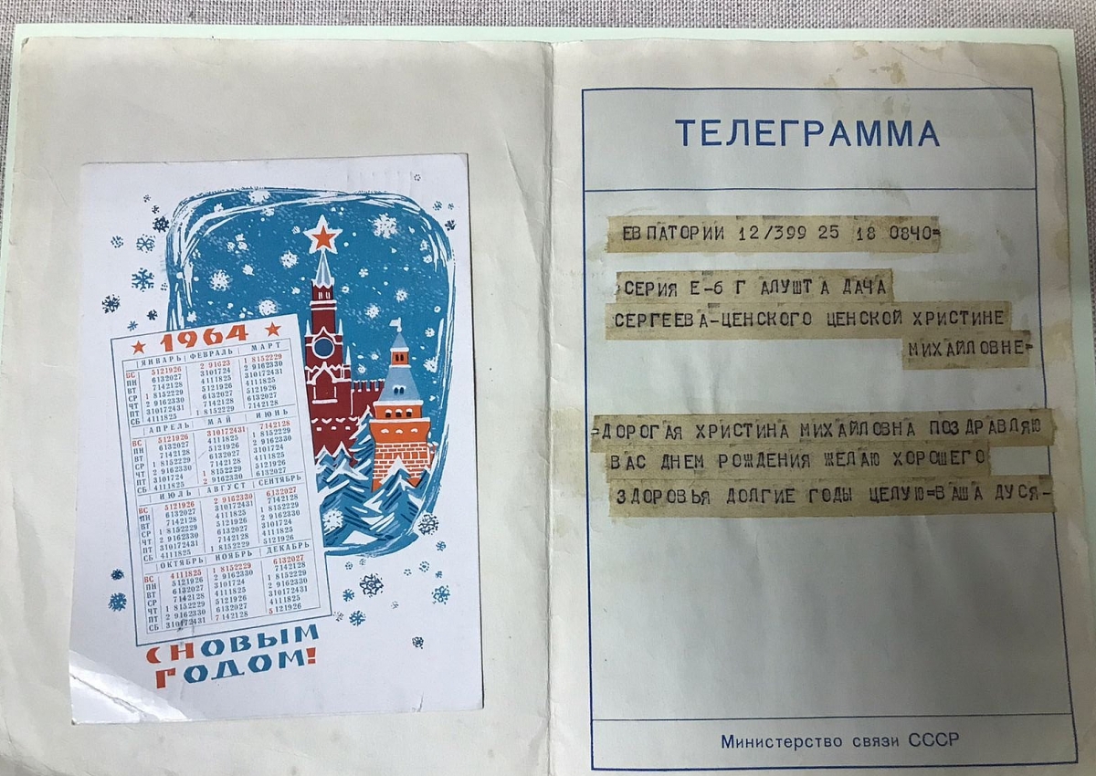 На выставке представлены письма и почтовые открытки 50-60-х годов 20 века, адресованные Х.М. Сергеевой-Ценской (жене писателя С.Н. Сергеева-Ценского) от разных лиц: фотографии, письма, телеграммы, открытки, книги и брошюры. Основная часть предметов — это почтовые отправления к Христине Михайловне. Письма, присланные при жизни С.Н. Сергеева-Ценского (1956 и 1958 годы), а также - после его смерти. Представлены фотографии семьи академика архитектуры А.Н. Бекетова. Наброски рисунков Веры Бекетовой - дочери В.Н. Бекетова, младшего брата архитектора А.Н. Бекетова.